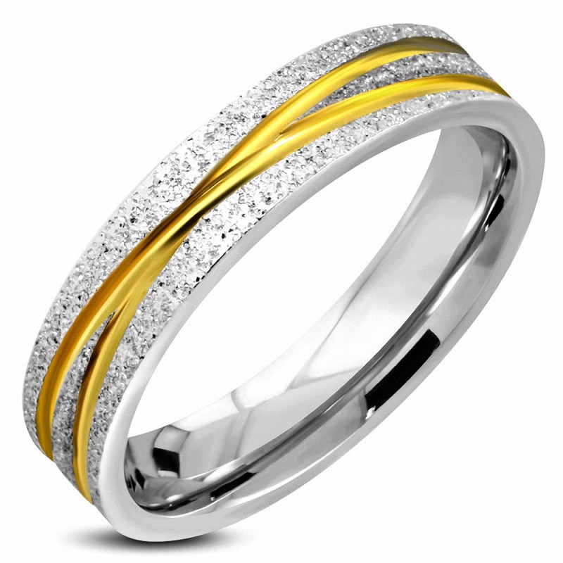 5mm | Bague plat à ajustement confortable à rayures croisées 2 tons sablé en acier inoxydable