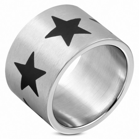 Bague 2 étoiles large en acier inoxydable avec finition matte en acier inoxydable