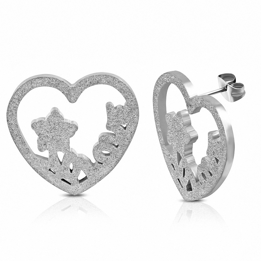 • Boutons d'oreilles en cœur en acier inoxydable sablés avec motif de monogramme d'amour en forme d'étoile (paire)