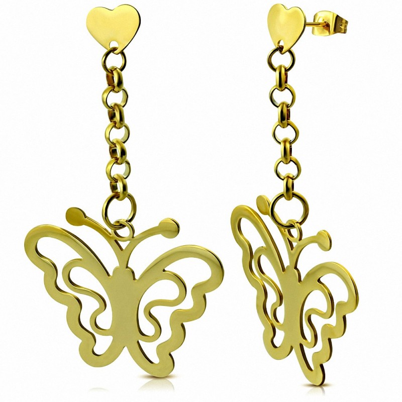 Boucles d'oreilles pendantes à longue goutte avec papillon en acier inoxyd