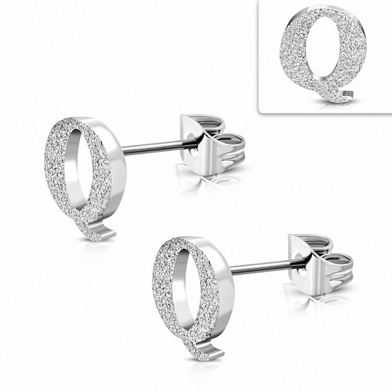 • Boucles d'oreilles Alphabet Q sablées en acier inoxydable (paire)