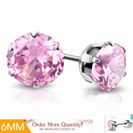 6mm | Boucles d'oreille rondes en acier inoxydable avec rondelles et bracelets en zirconium (paire)
