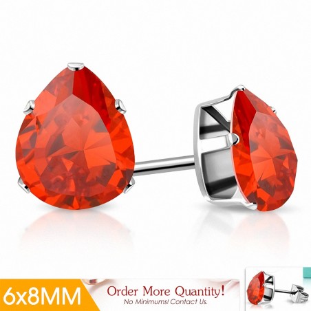 • 6x8mm | Boucles d'oreilles clous en acier inoxydable avec poire / larme et jacinthe orange CZ (paire)