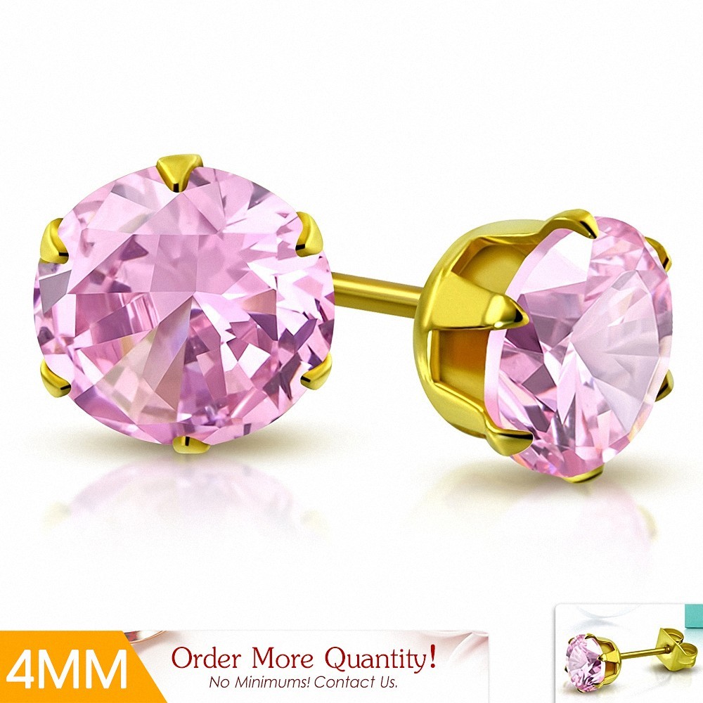• 4mm | Boucles d'oreille rondes en acier inoxydable doré avec rondelles et clouss en argent doré (paire)