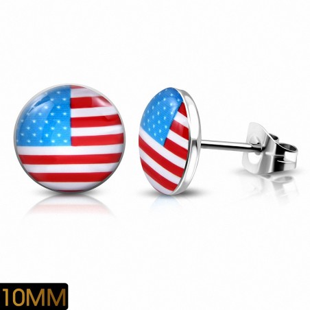 10mm | Drapeau en acier inoxydable des États-Unis Cercle Boucles d'oreilles (paire)