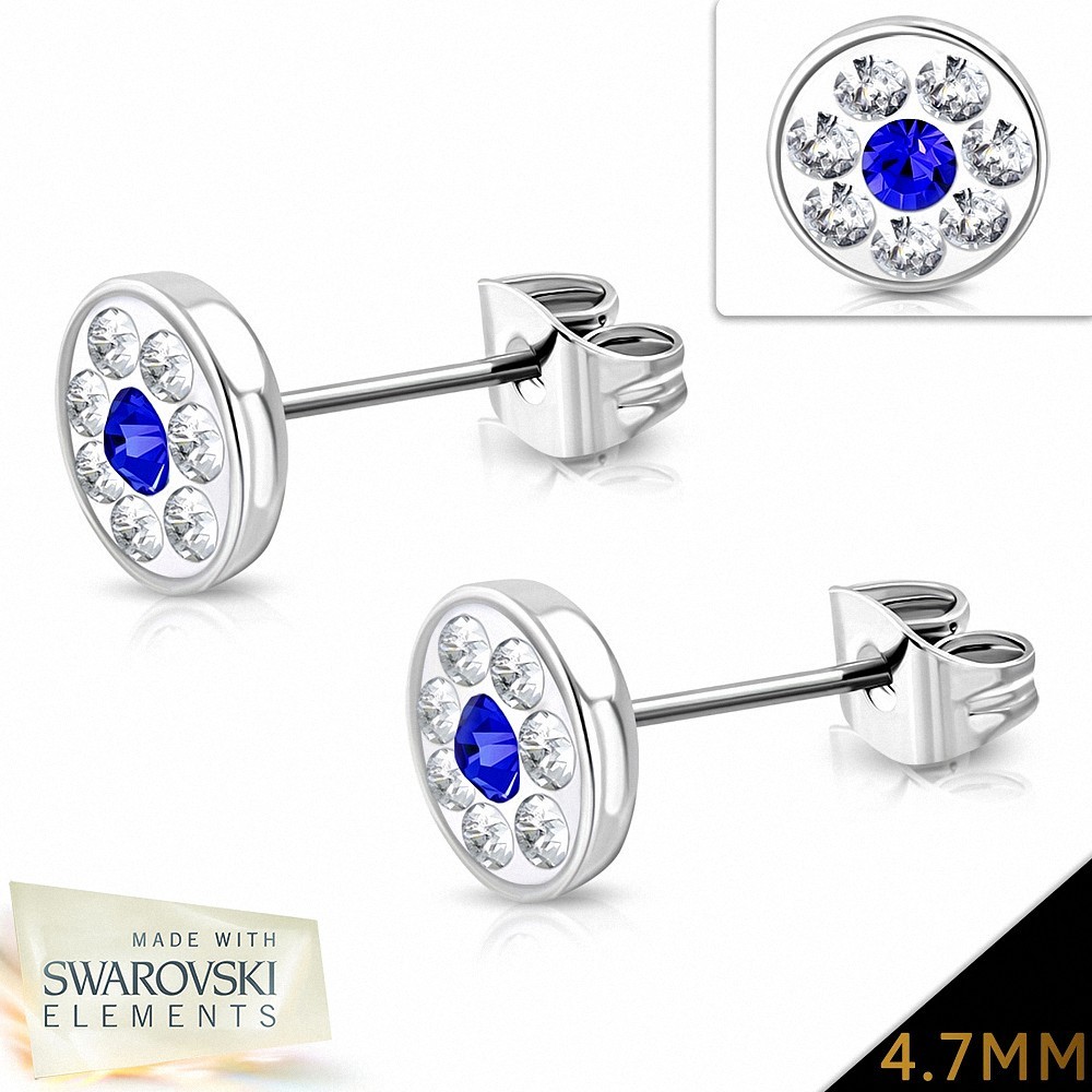 4.7mm | Boucles d'oreilles en acier inoxydable avec cristaux et cristaux transparents et saphir (paire)