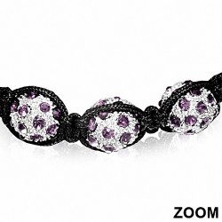 • Bracelet réglable Argil Disco Ball Shamballa noir avec cordon et cordelette avec améthyste CZ