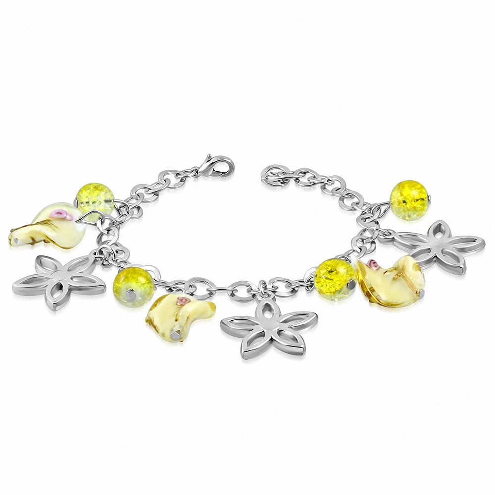 • Bracelet en alliage de mode avec perles de verre et fleurs et liens de charm