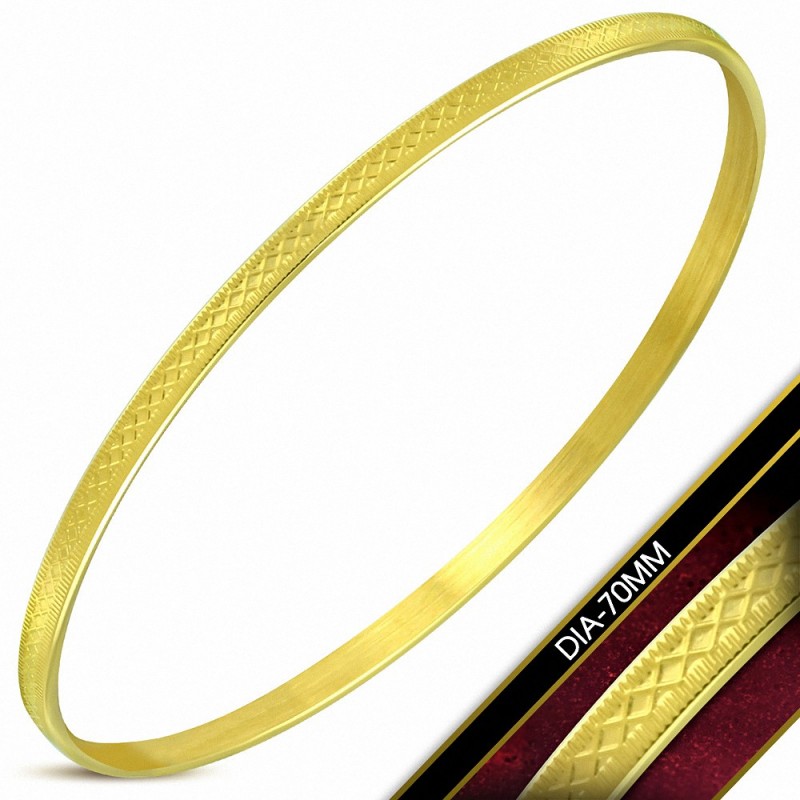 DIA-70mm x 3.5mm | Jonc plat maigre avec grille gravée en acier inoxydable doré