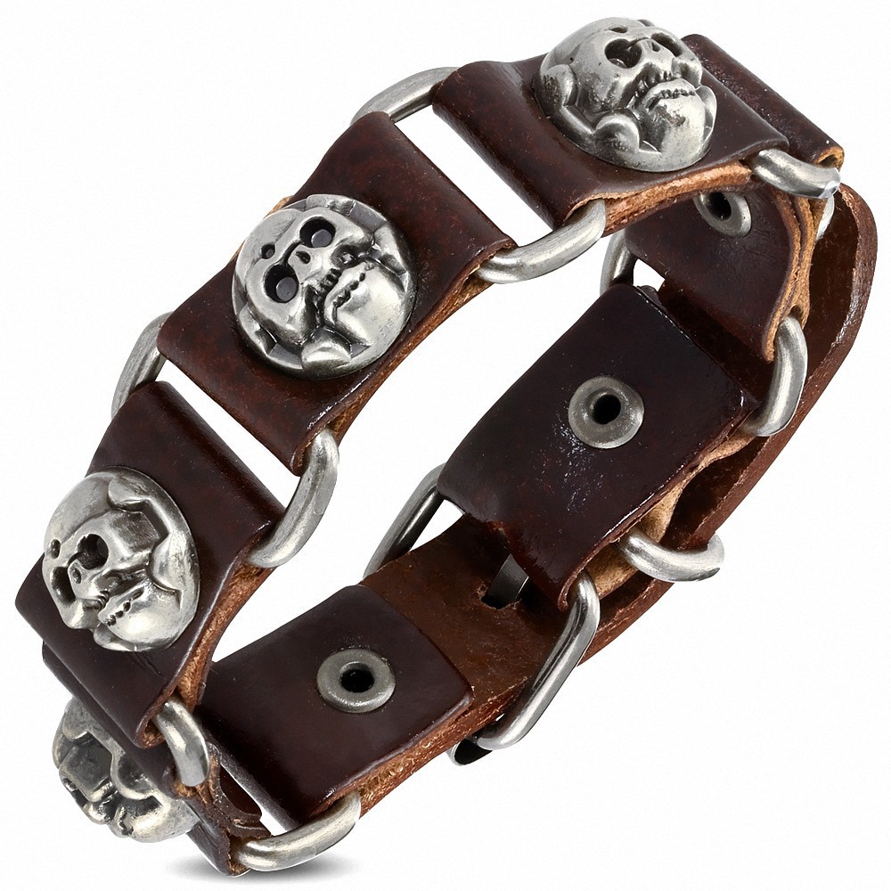 Bracelet motard en cuir marron véritable zombie avec boucle de ceinture et boucle de ceinture