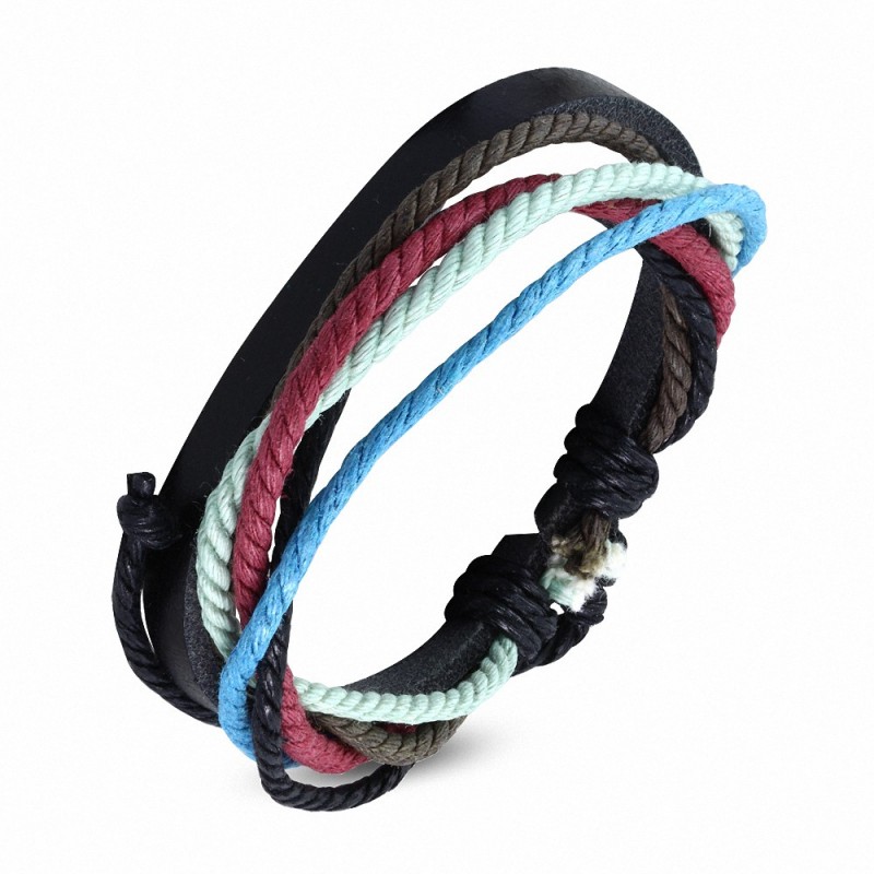 • Bracelet ajustable en cuir noir avec cordon multicolore à la mode - FWB127