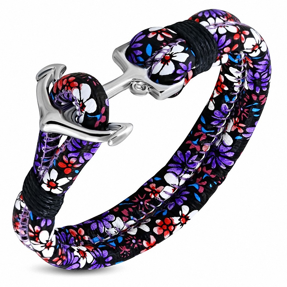 • Bracelet en alliage de mode et fleurs colorées en cuir PU avec ancre marine - FBX098