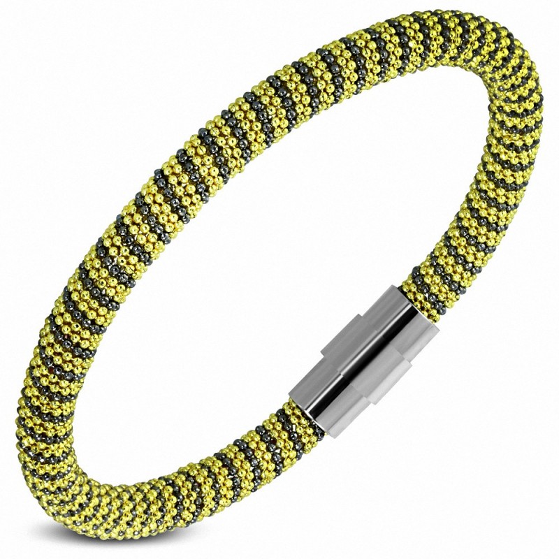 • Bracelet en acier rond avec maille jaune et noir 20 cm x 6 mm