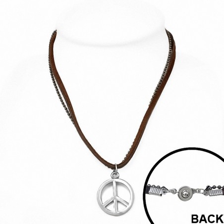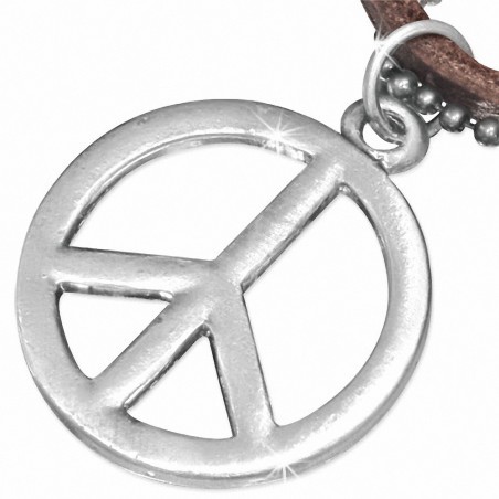 Chaine homme militaire en cuir marron avec pendentif peace.