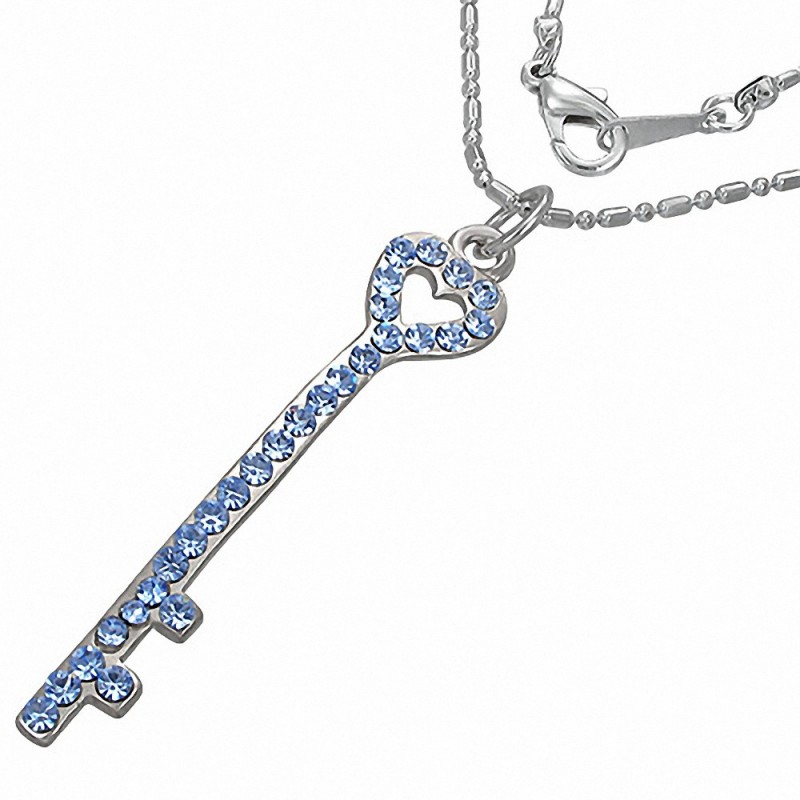 • Alliage de mode cristal amour coeur collier de chaîne de charm clé  saphir bleu CZ