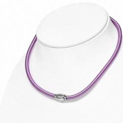 • 48cm x 5mm | Collier tour de cou en caoutchouc gainé de tissu de couleur violette / améthyste avec verrou magnétique en acier