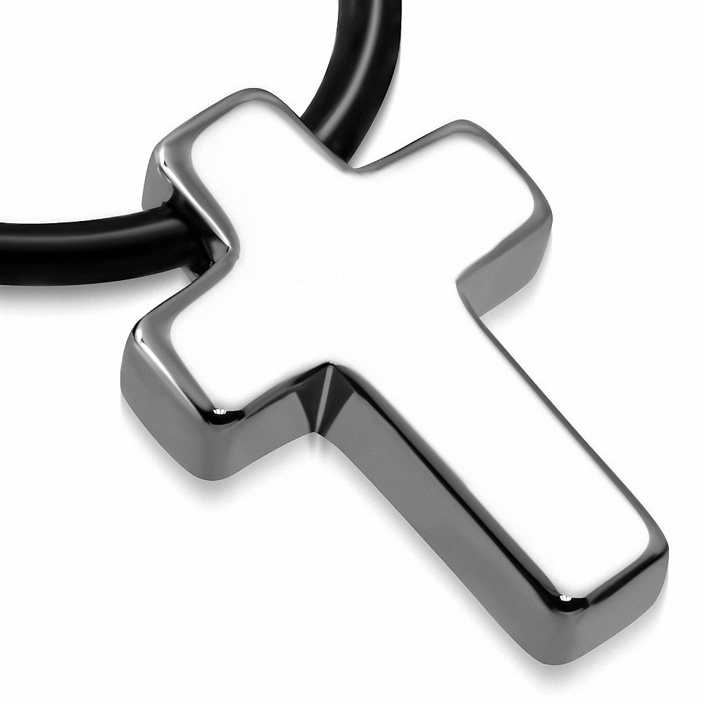 charm de croix latine en carbure de tungstène avec collier de corde en caoutchouc noir