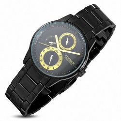 Montre homme | Montre de direction étanche en alliage Fashion avec chronographe fixe 2 tons à cadran noir et cadran noir