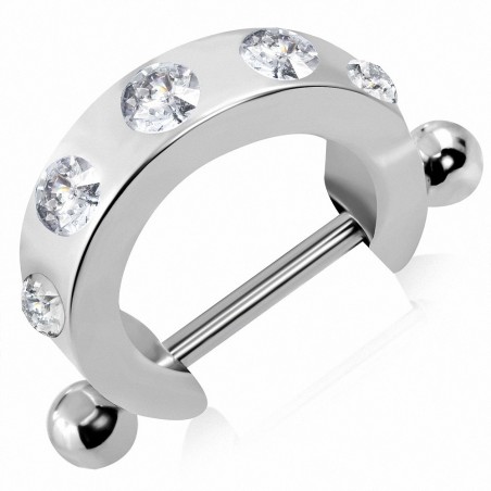 Piercing téton d'étrier en acier inoxydable avec CZ incolore | Boule 3mm | G-1
