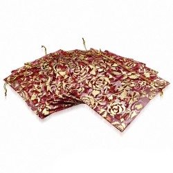 • 7x9cm | Pochon cadeau pour bijoux en organza bleu et doré motif fleur de vigne rose (unité)