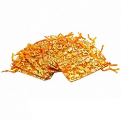 12x22cm | Bleu clair Organza Fleur Vigne Broderie Cordon Bijoux Pochon (unité)