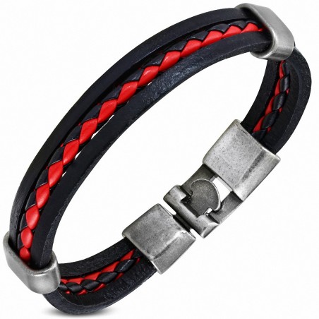 • Bracelet à bascule en cuir PU tressé noir et rouge