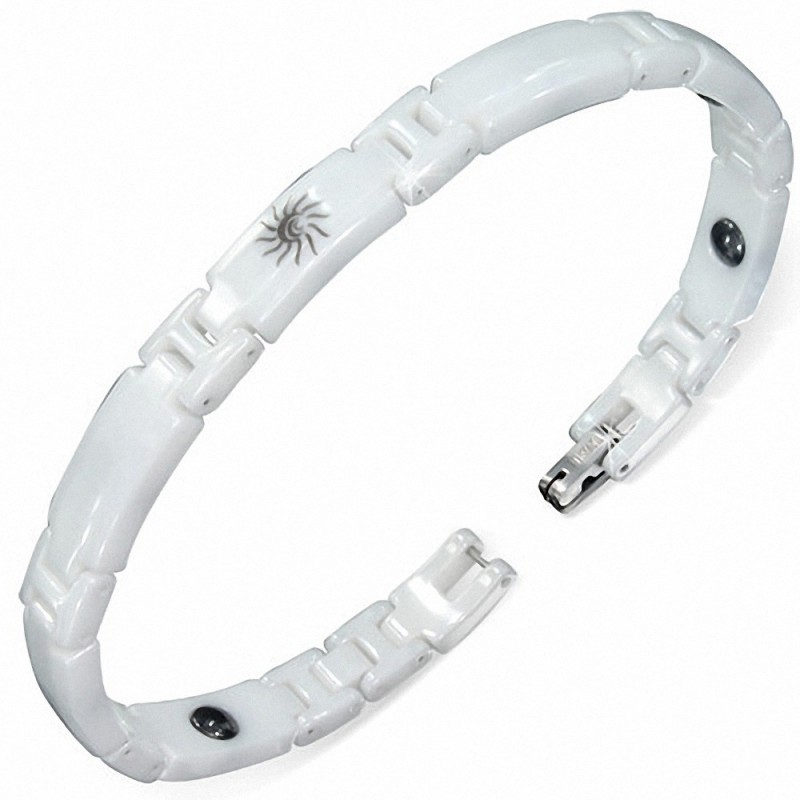 • 7mm | Bracelet magnétique à maillons en céramique blanche 2 tons Sun Emblem