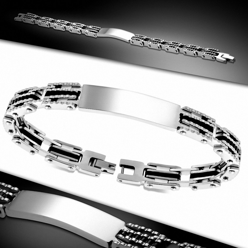 • Bracelet en acier inoxydable avec bracelet en forme de montre gravable 2 tons en caoutchouc noir