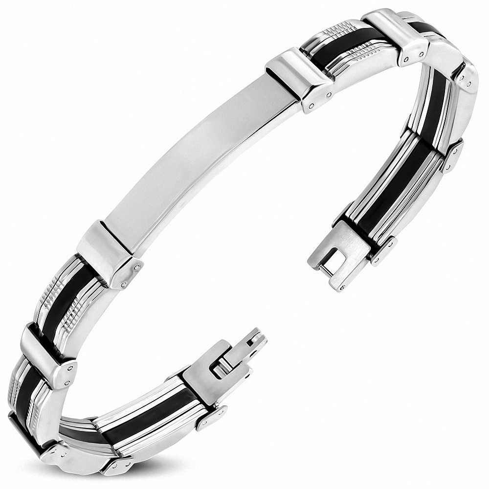 • Bracelet de style montre gravable en acier inoxydable avec caoutchouc noir 2 tons B