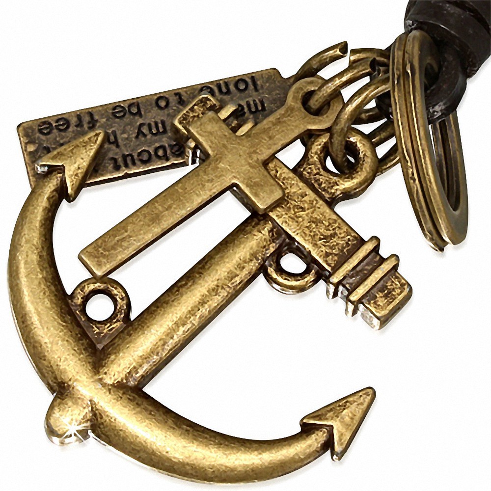 Alliage alliage marin croix anneau tag charm réglable collier en cuir noir