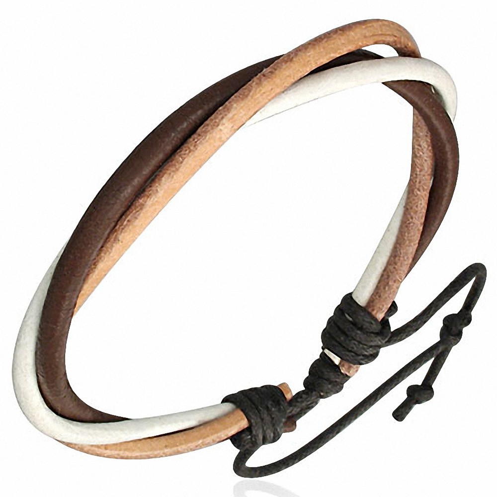 Bracelet ajustable 3 cordes en cuir enroulées brun chocolat blanc