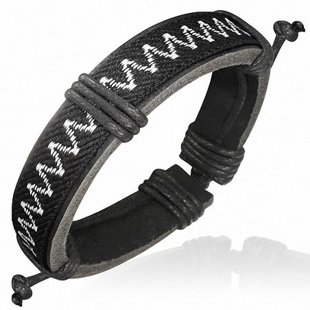 • Bracelet ajustable en cuir avec cordelette tissée au crochet en zigzag