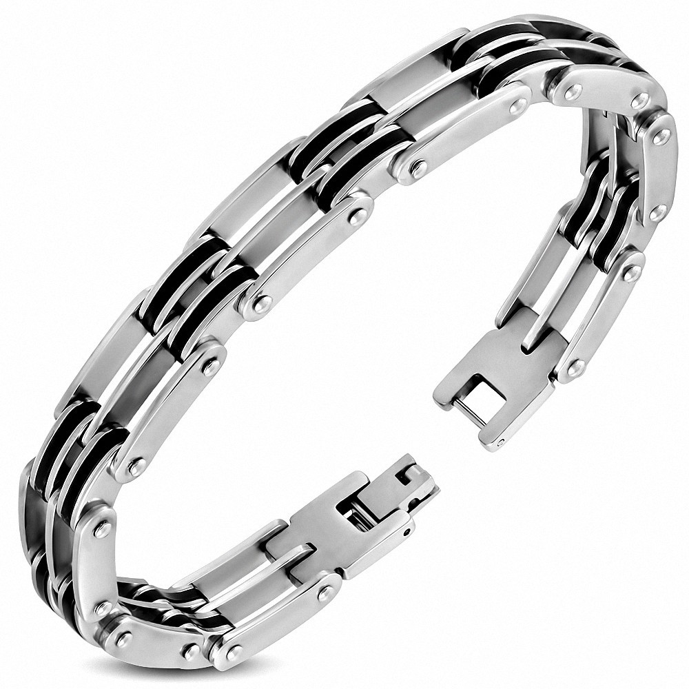 Bracelet à maillons hommes en acier inoxydable avec caoutchouc noir et géométrique 194