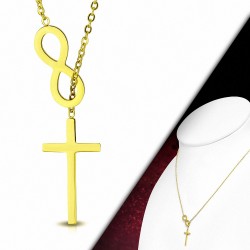 • Chaîne à breloques en forme de croix avec croix latine en acier inoxydable doré