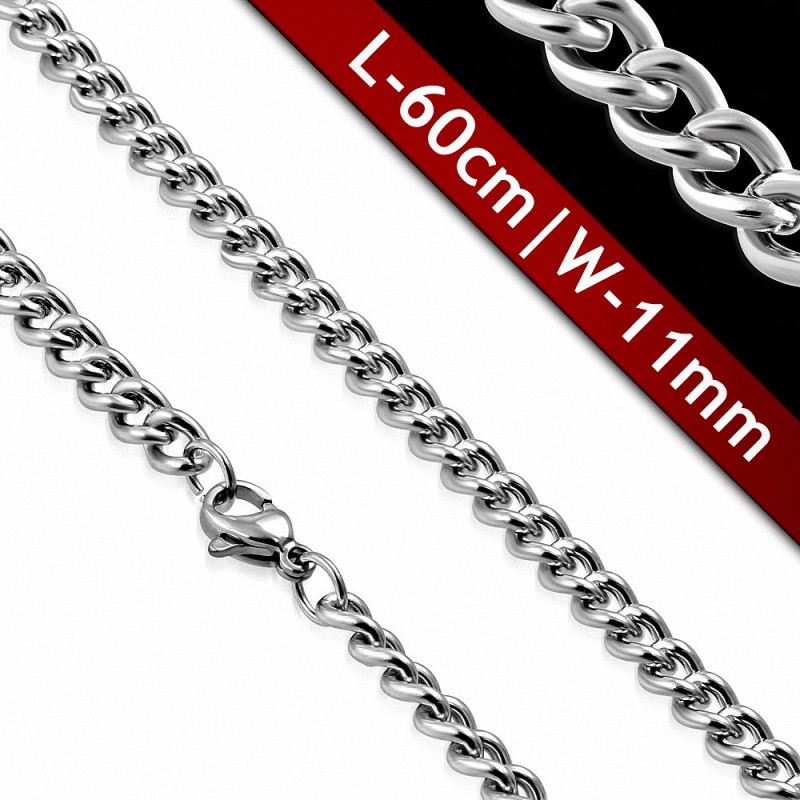 L-58cm | W-11mm Chaîne à maillons cubains à fermoir mousqueton en acier inoxydable