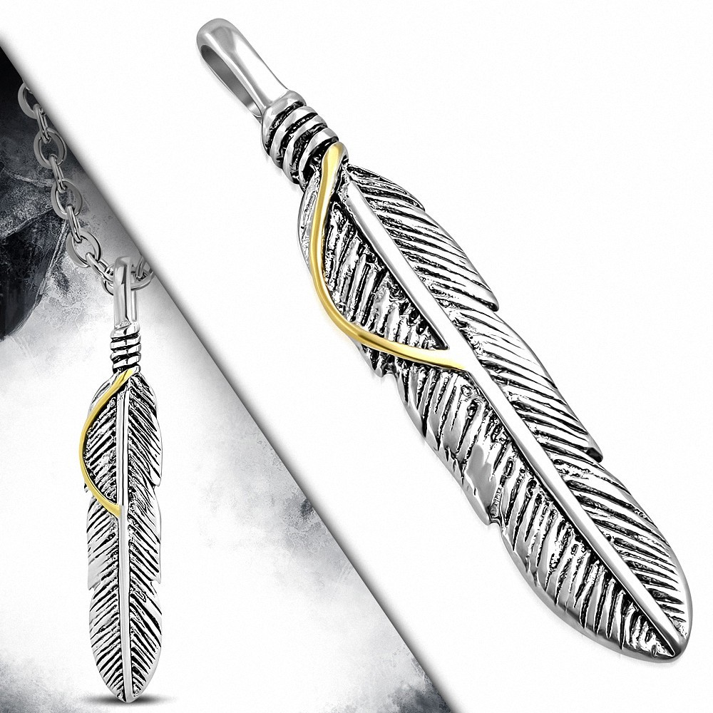 Pendentif motard à plumes / feuilles en acier inoxydable 2 tons