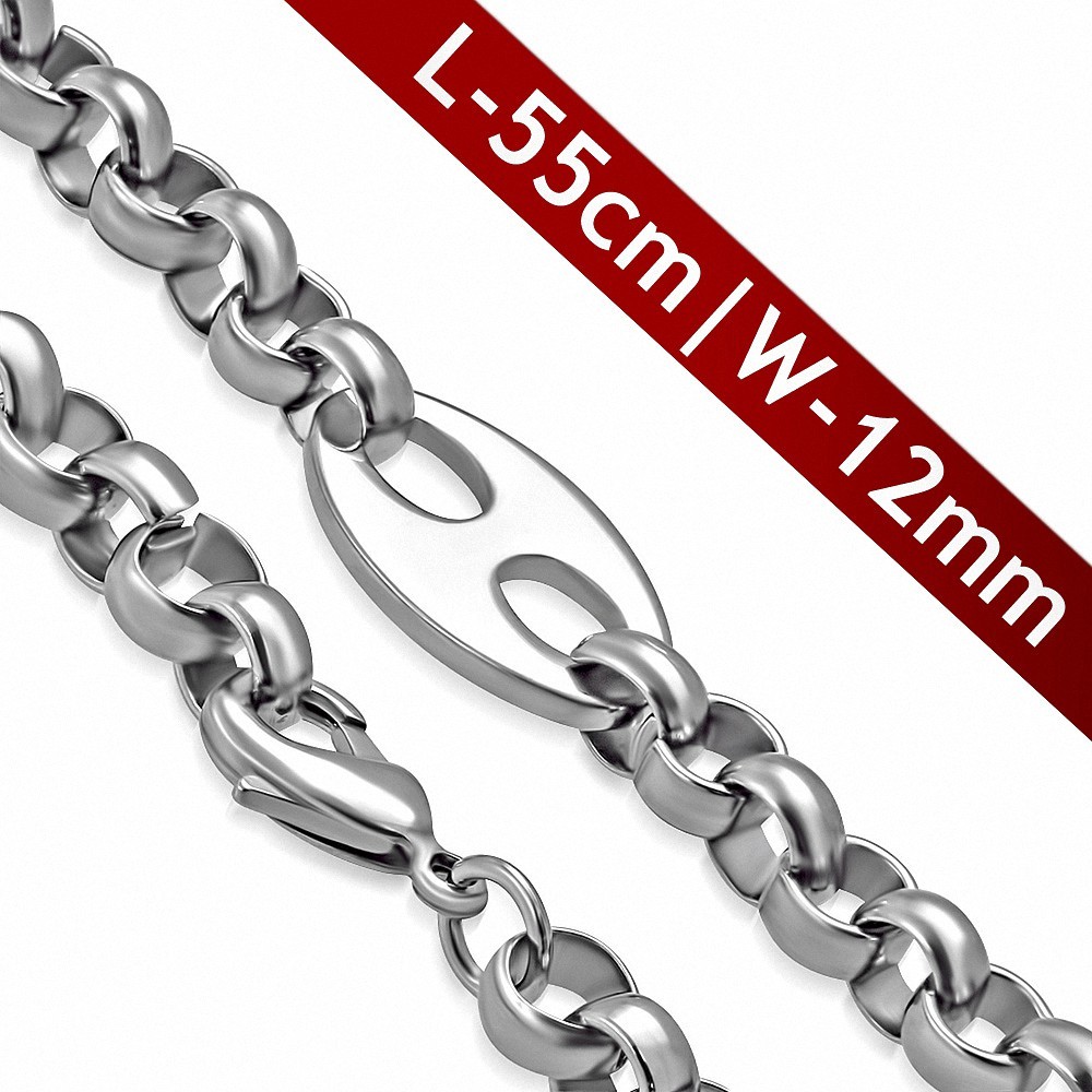 L-55cm | Chaîne à maillons Rolo avec barre ovale en forme de fermoir à pince de homard en acier inoxydable W-12mm