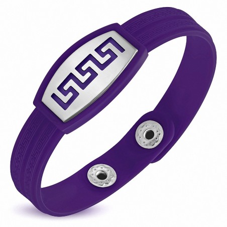 • Bracelet caoutchouc mauve avec clé grecque style montre avec motif clé grecque en acier inoxydable et fermeture à pression